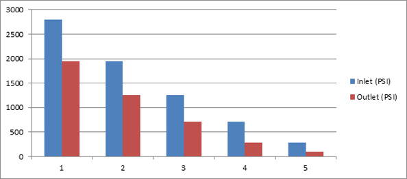 Pressure drop staging using 5 stages energydissipation multistage orifice